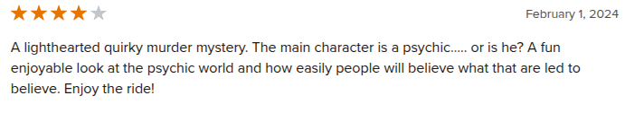 Now Simon must untangle a web of supernatural intrigue. With a skeptical police chief, dishonest dead people, and a notorious debunker in his way, Simon sets out to solve the crime and fast-track himself to being the most famous psychic in the world. Or the most famous psychic flop.